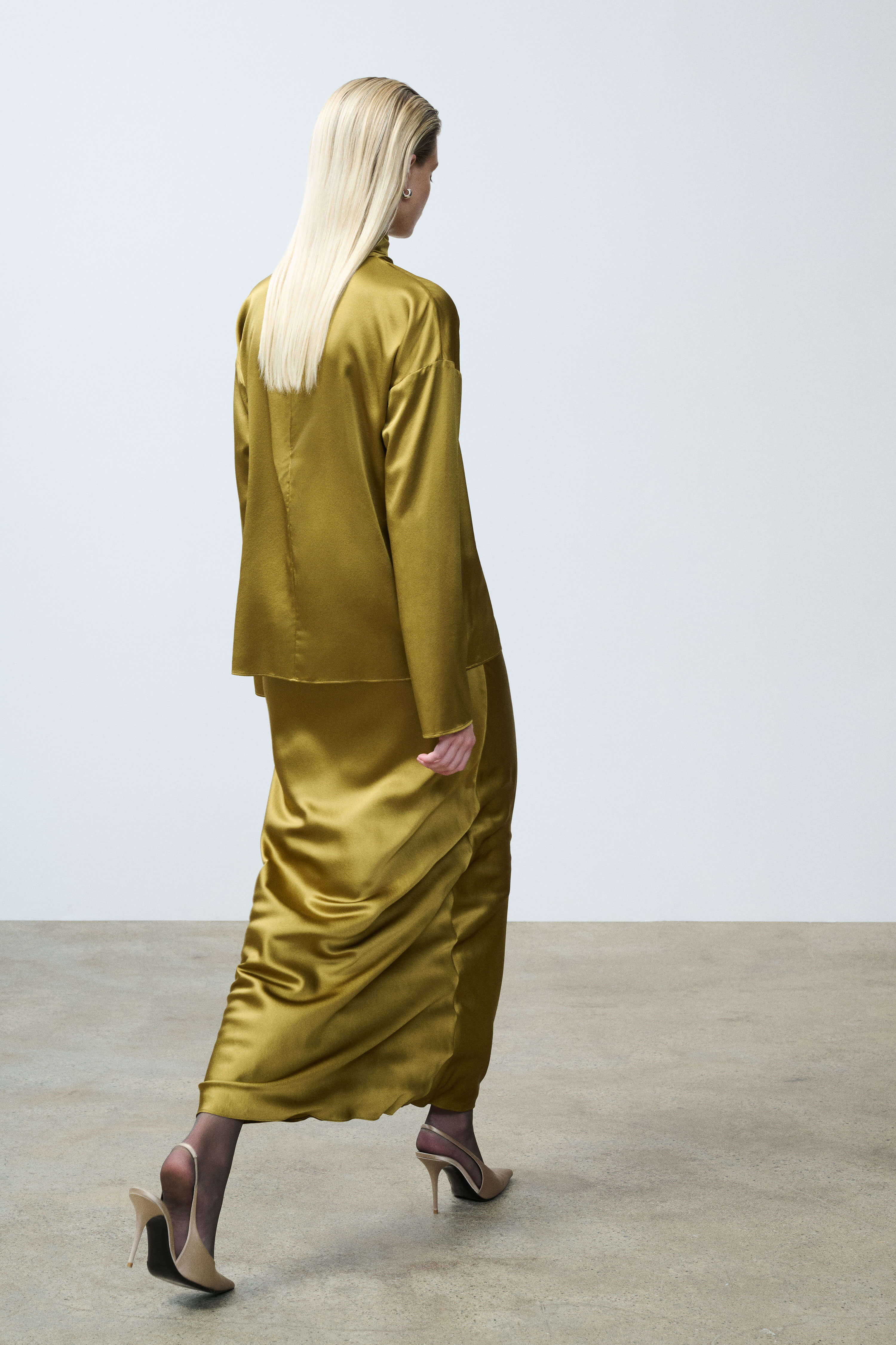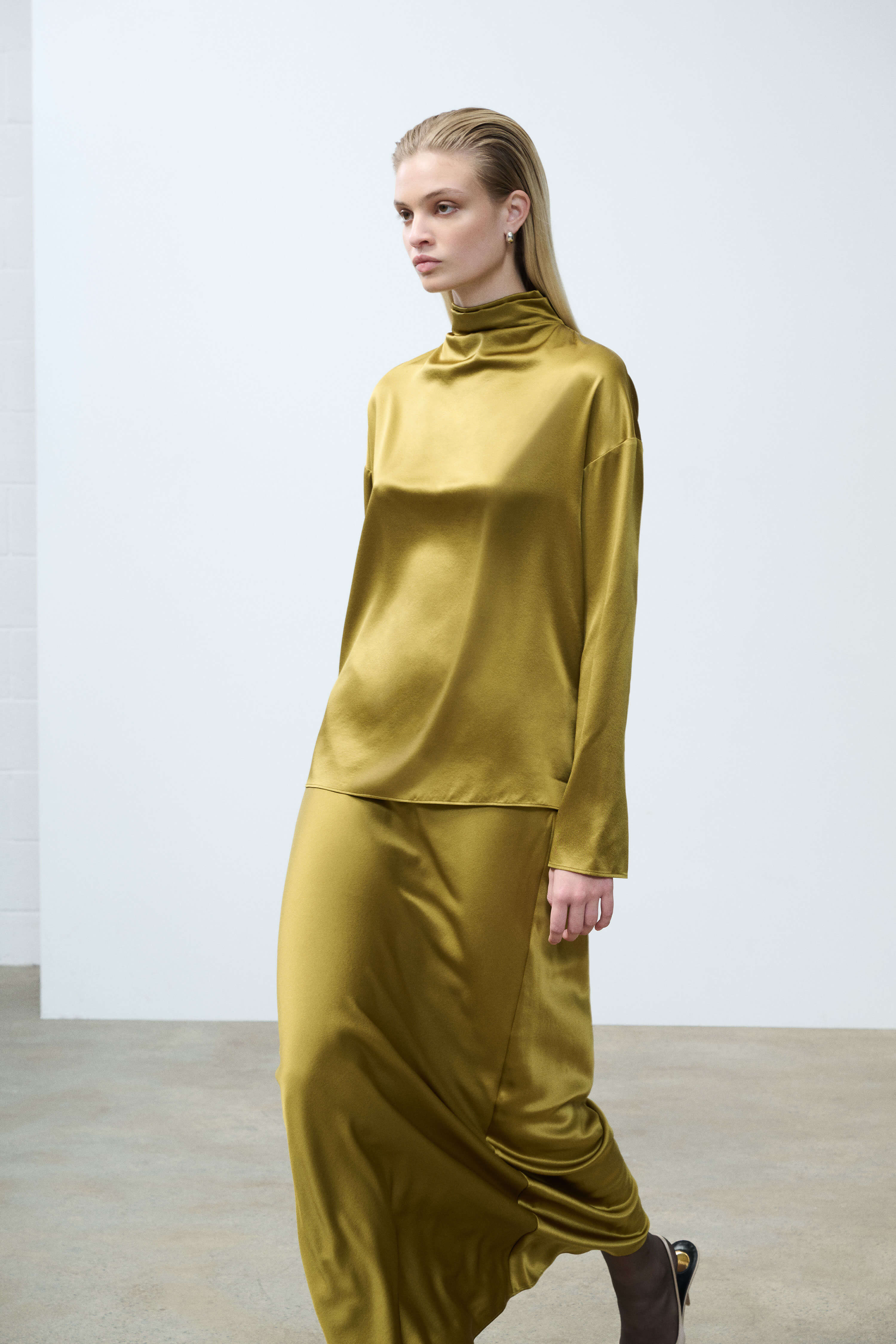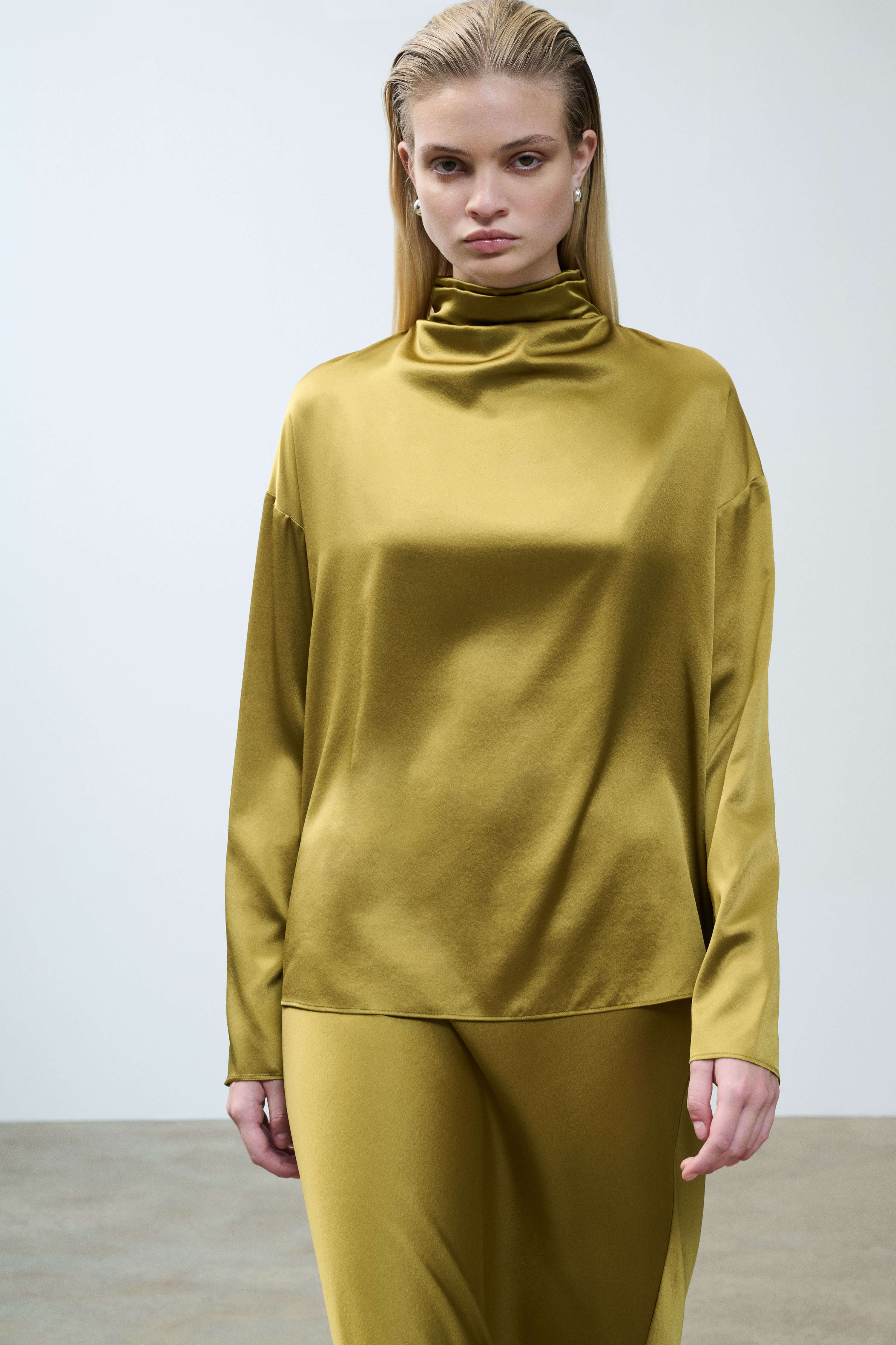 The high cowl neck and chartreuse color make this the kind of understated, elegant top that looks effortless but still makes a statement.