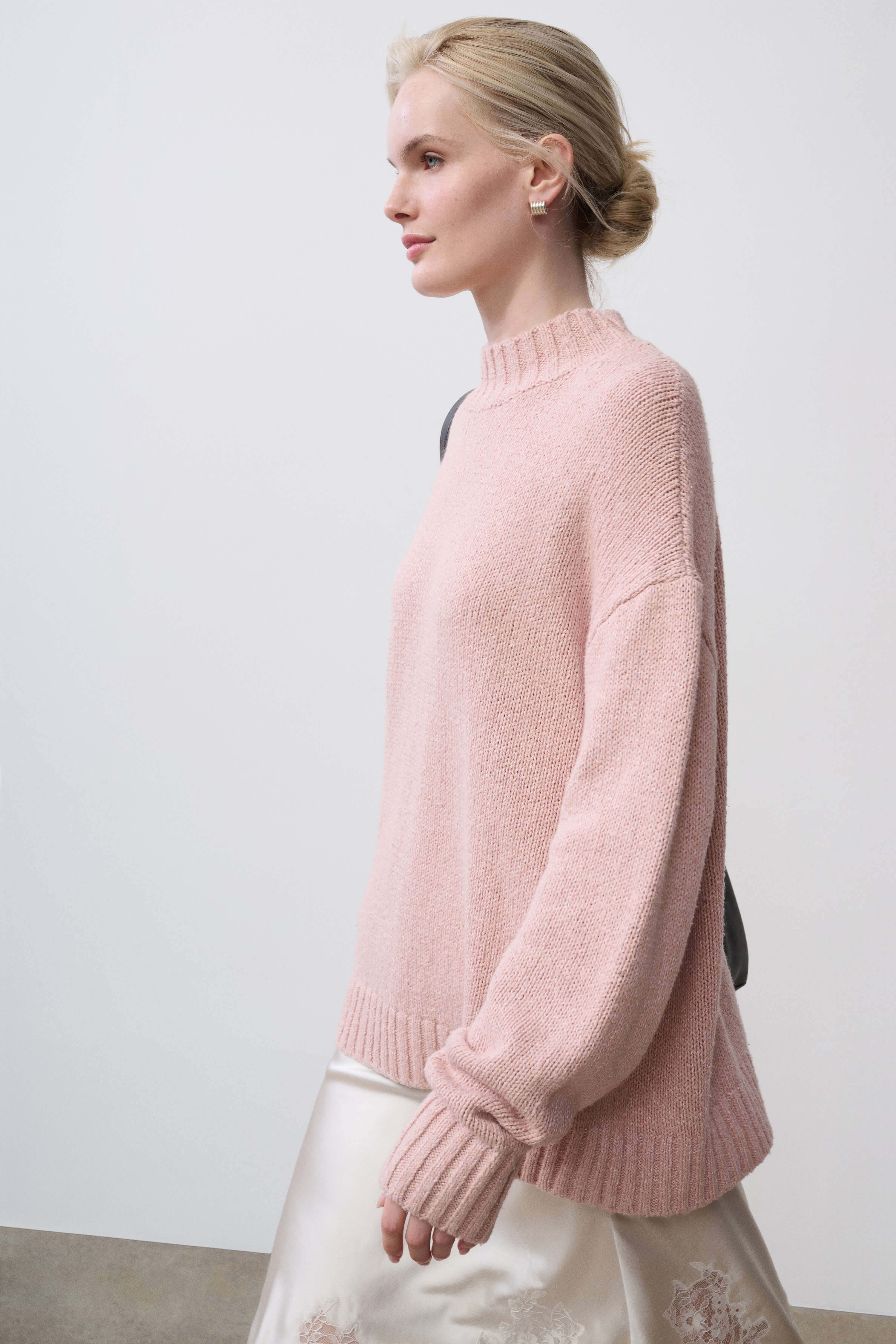 Vintage-inspired textures, tones and fabric create the perfect daytime piece. This mockneck sweater brings an interesting blend of cotton and silk linen that feels soft and relaxed against your skin.