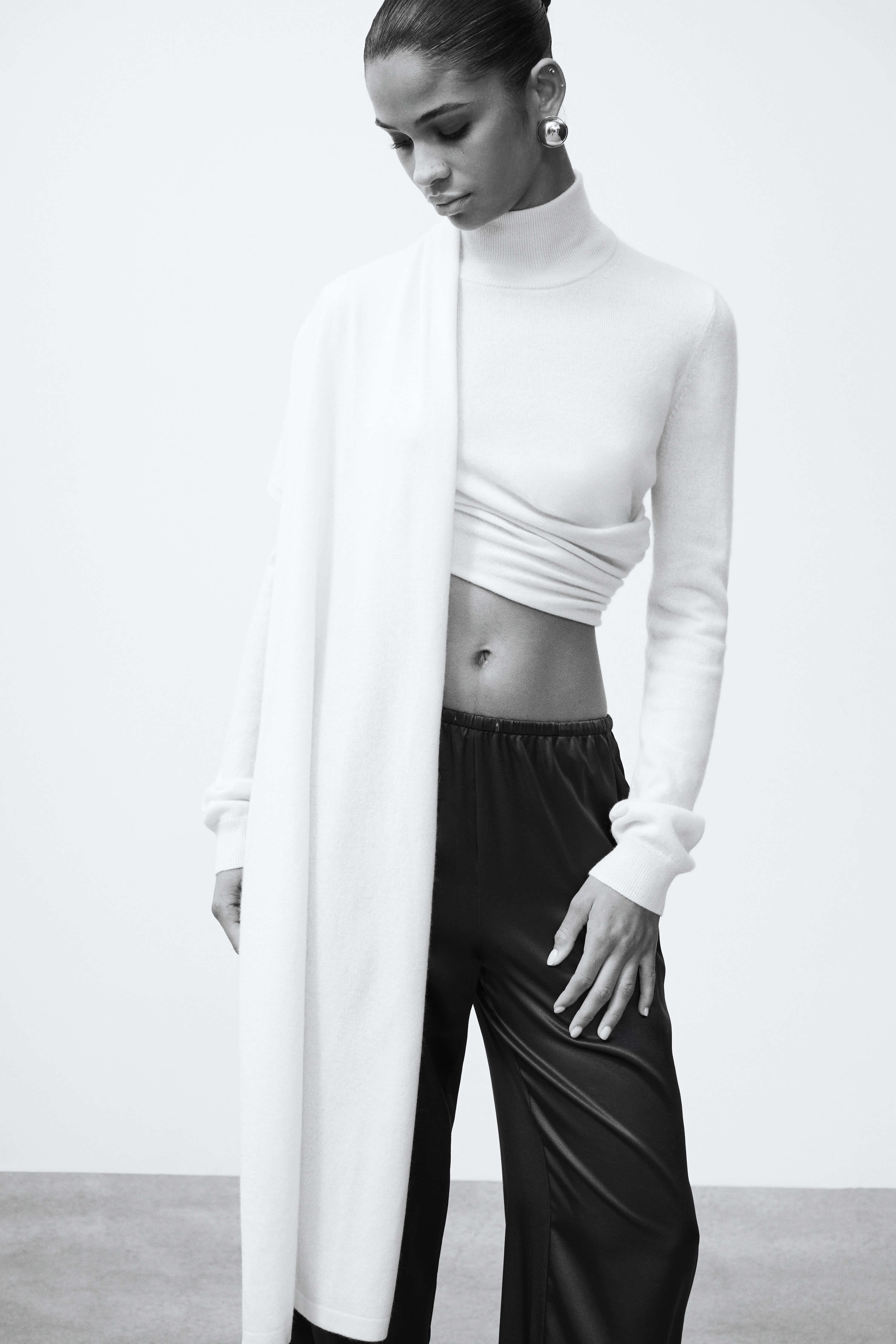 Headline news: this cool-girl funnel-neck is crafted from 100% Royal cashmere—AKA it's the best of the best. The scarf-style drape can be worn multiple ways.