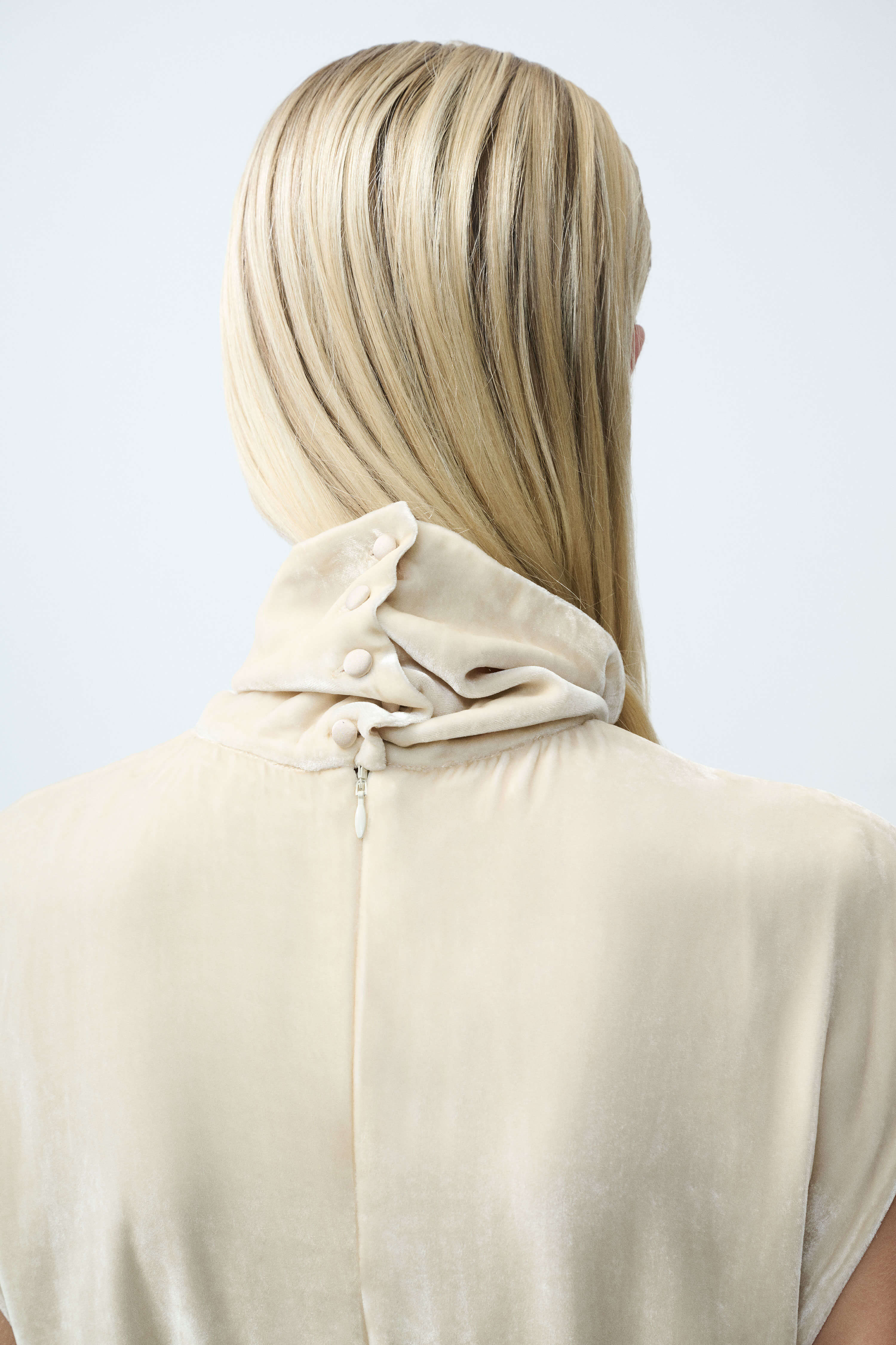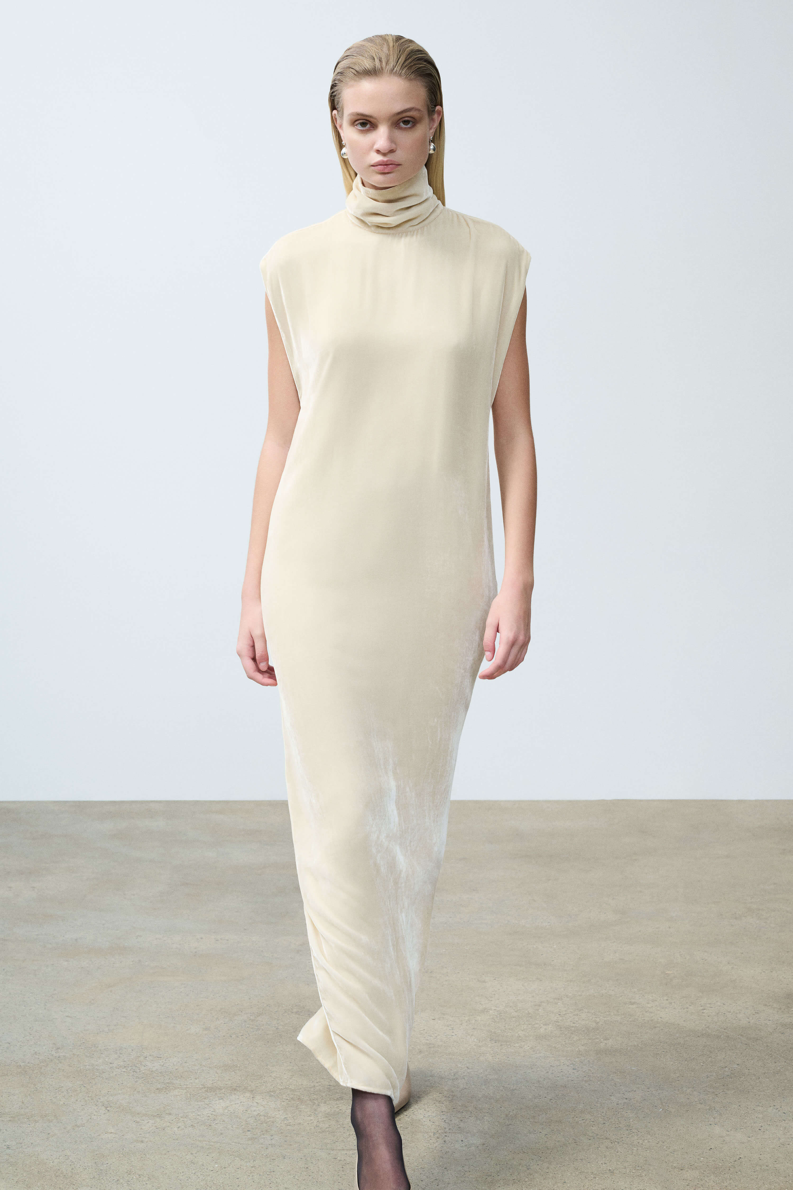 This luxuriously soft silk-viscose velvet dress delivers both warmth and elegance—perfect for winter events.
